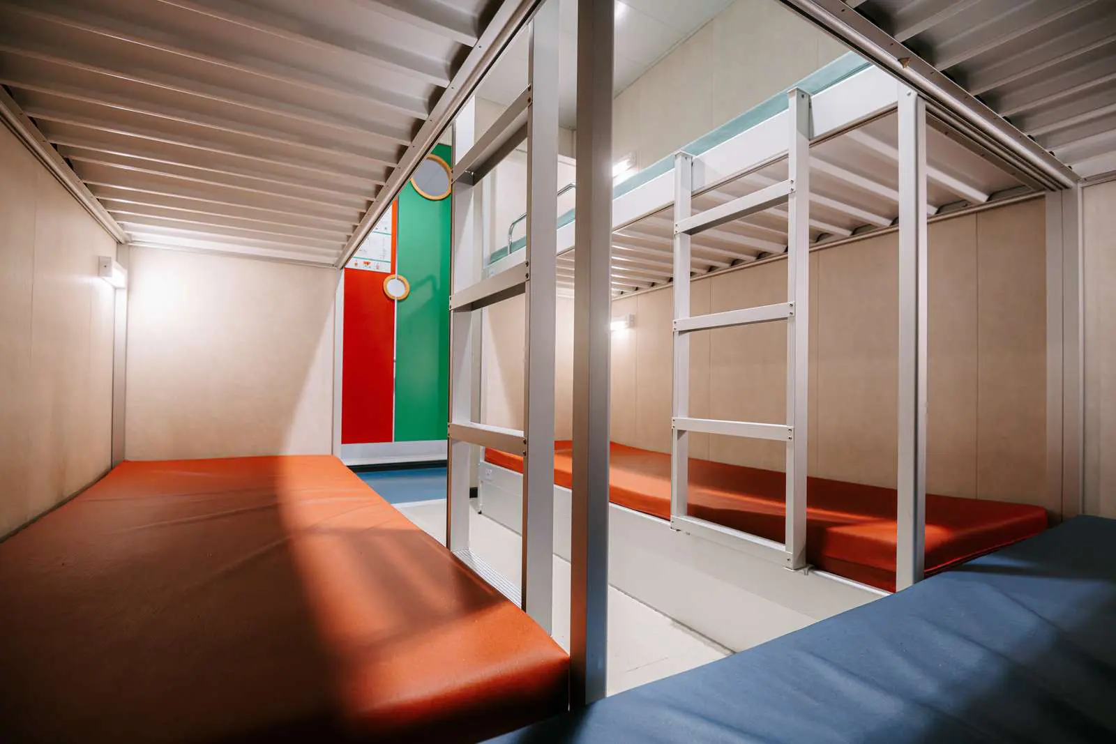 Die Liegeabteile befinden sich auf Deck 2 unterhalb des Autodecks. Jeweils 6 Liegen pro Abteil. Die Abteile verfügen über eine Schwingtür zum Gang. Gemeinschaftsduschen & Toiletten befinden sich auf dem gleichen Deck.