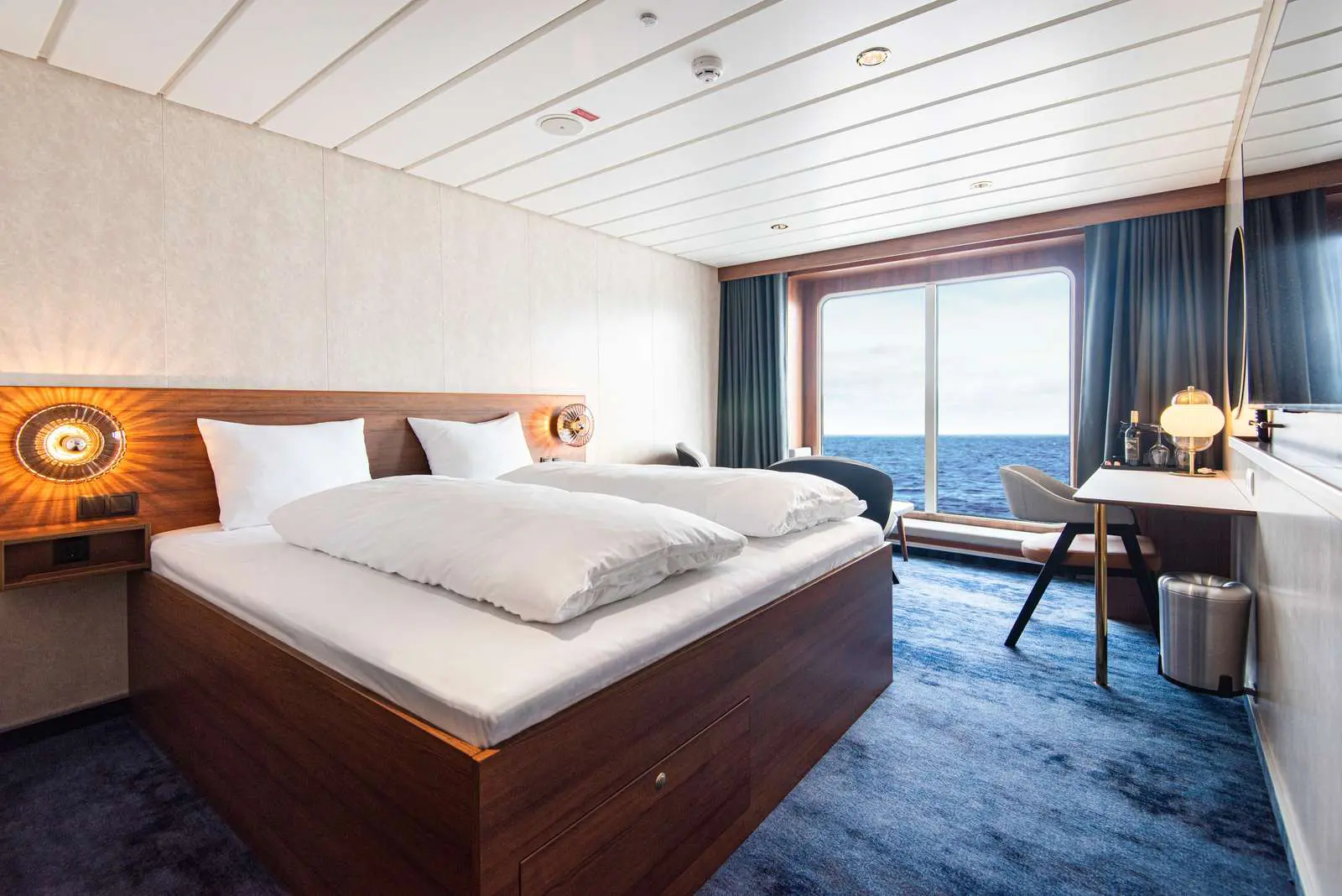 Die 34 Nordic Luxuskabinen liegen auf Deck 8 und bieten eine schöne Aussicht aus den fast bodentiefen großen Fenstern. Die Kabinen verfügen über ein King-size Doppelbett und ein ausziehbares Einzelbett (80x190 cm).