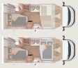 Die Sitzgruppe bietet 4 Personen bequem Platz, Fahrer und Beifahrersitz können im Stand umgedreht werden und werden dadurch Teil der Sitzgruppe. Man kann wahlweise das Hubbett nutzen oder die Sitzgruppe zu einem Doppelbett umbauen.